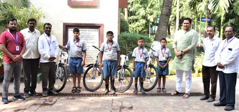 त्या सर्व विद्यार्थ्यांना बारामती येथील उद्योजक आर.जे.सायकल व रयत बँक संचालक मंडळाच्या सहकार्यातून सायकल देण्यात आल्या आहेत. यामध्ये श्री छत्रपती शिवाजी विद्यालय व कनिष्ट महाविद्यालयासाठी २६, राधाबाई काळे कन्या विद्यामंदिर व कनिष्ट महाविद्यालयासाठी १० व श्री छत्रपती संभाजी प्राथमिक विद्यालयासाठी ६८ अशा एकूण १०४ सायकली मिळाल्या आहेत. या सायकलचे श्री छत्रपती संभाजी प्राथमिक विद्यालयातील विद्यार्थ्यांना आ. आशुतोष काळे यांच्या हस्ते प्राथमिक स्वरुपात वाटप करण्यात आले. यावेळी मुख्याध्यापक राजू पाचोरे, शिक्षक जगदीश बैरागी, सुनील भोईर, किरण वसावे, तसेच पालक सचिन शिंदे,नाजगड आदी उपस्थित होते.खा. शरदचंद्रजी पवार यांच्या ८२ व्या वाढदिवसानिमित्त विद्यार्थ्यांना सायकल वाटप प्रसंगी आ. आशुतोष काळे.